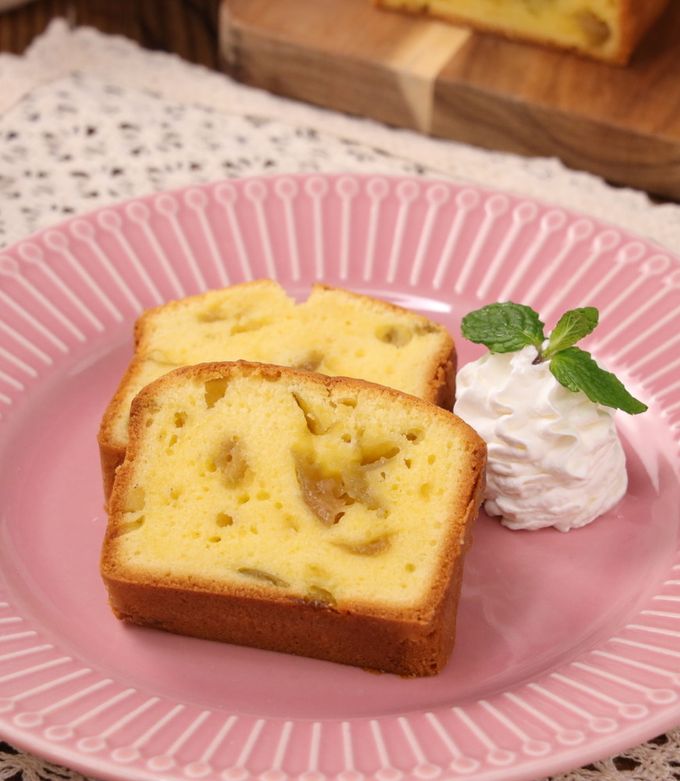 フレッシュジューシー♪パイナップル&りんごコンポートたっぷりパウンドケーキ。