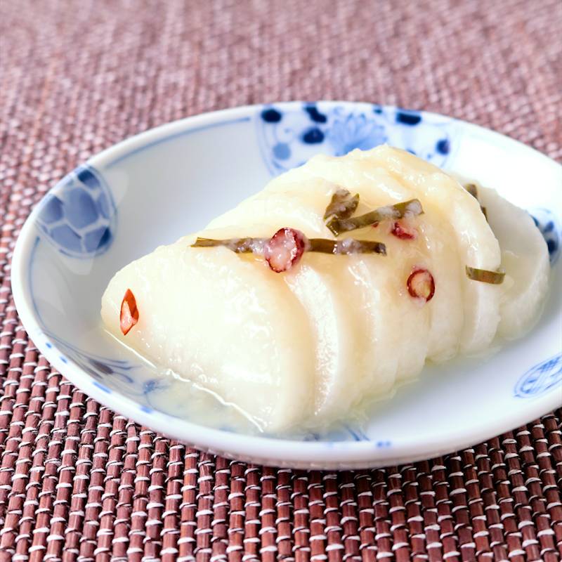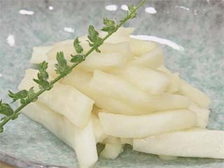大根のビール辛子漬け Pickled radish with beer。