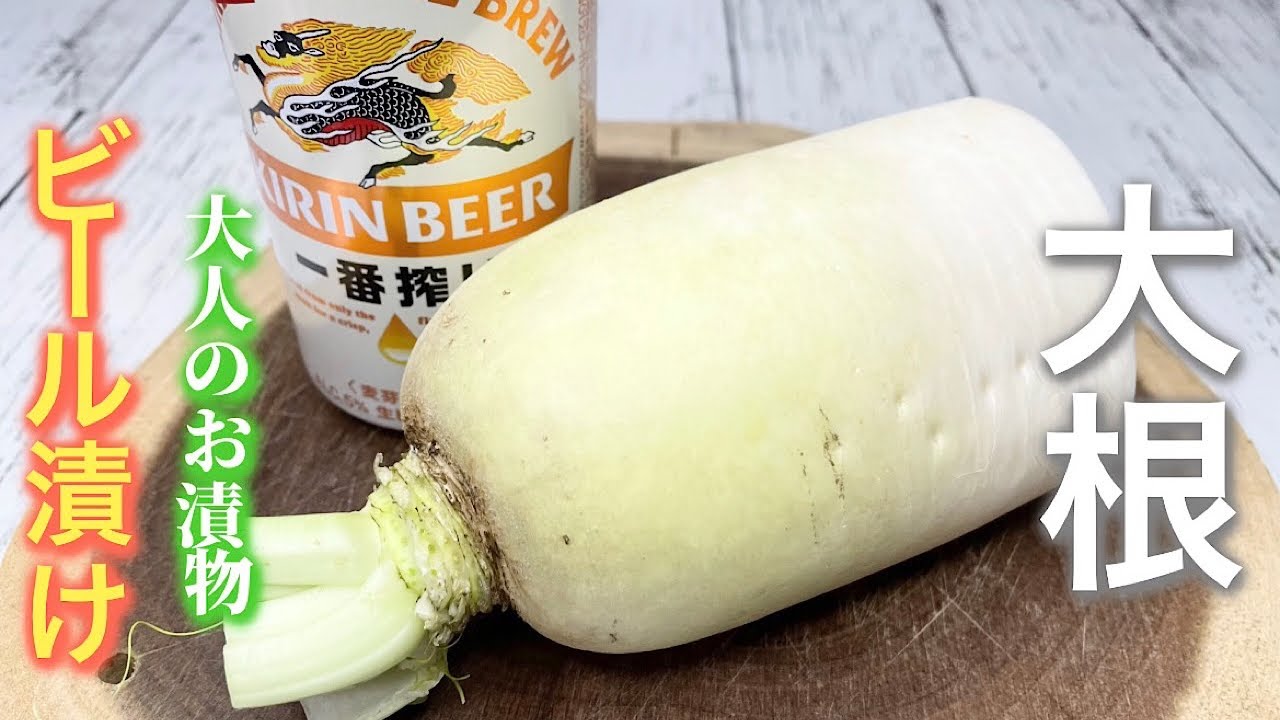 大根のビール漬け ポリポリ食感止まらない美味しさ♪大人のお漬物でお酒のおつまみにもってこいです! - YouTube。