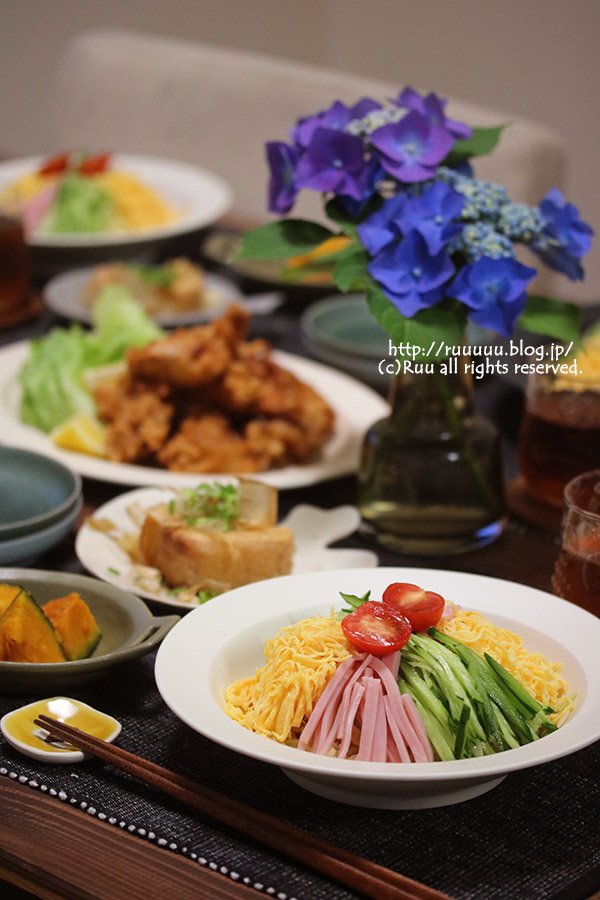 献立 冷やし中華と鶏の唐揚げ。~休日こそが激務の時~ : るぅのおいしいうちごはん Powered by ライブドアブログ。