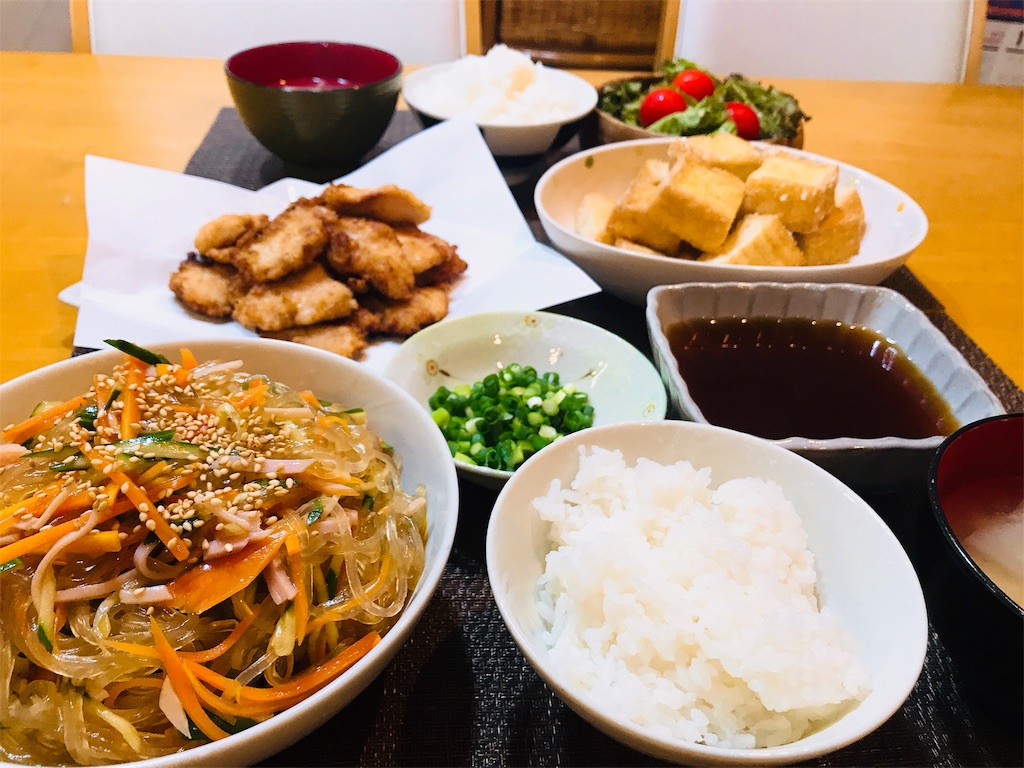 晩ごはん献立 塩麹唐揚げ&簡単揚げ出し豆腐&春雨サラダ~バスクチーズケーキ食べたい~ - ❁︎節約ごはん&日常~ときどき三兄弟~❁。