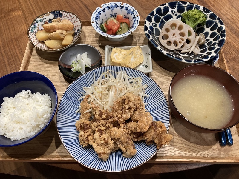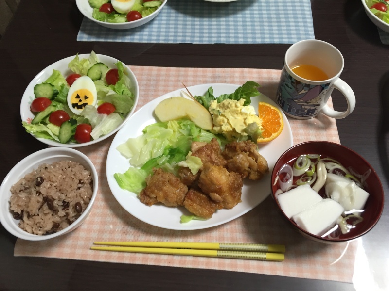鶏の唐揚げでまごわやさしい献立。お陽さま料理。