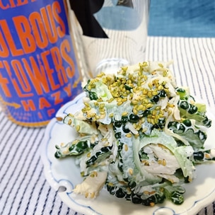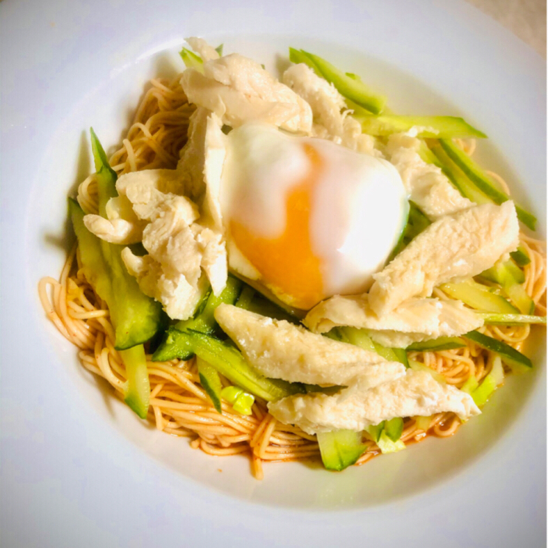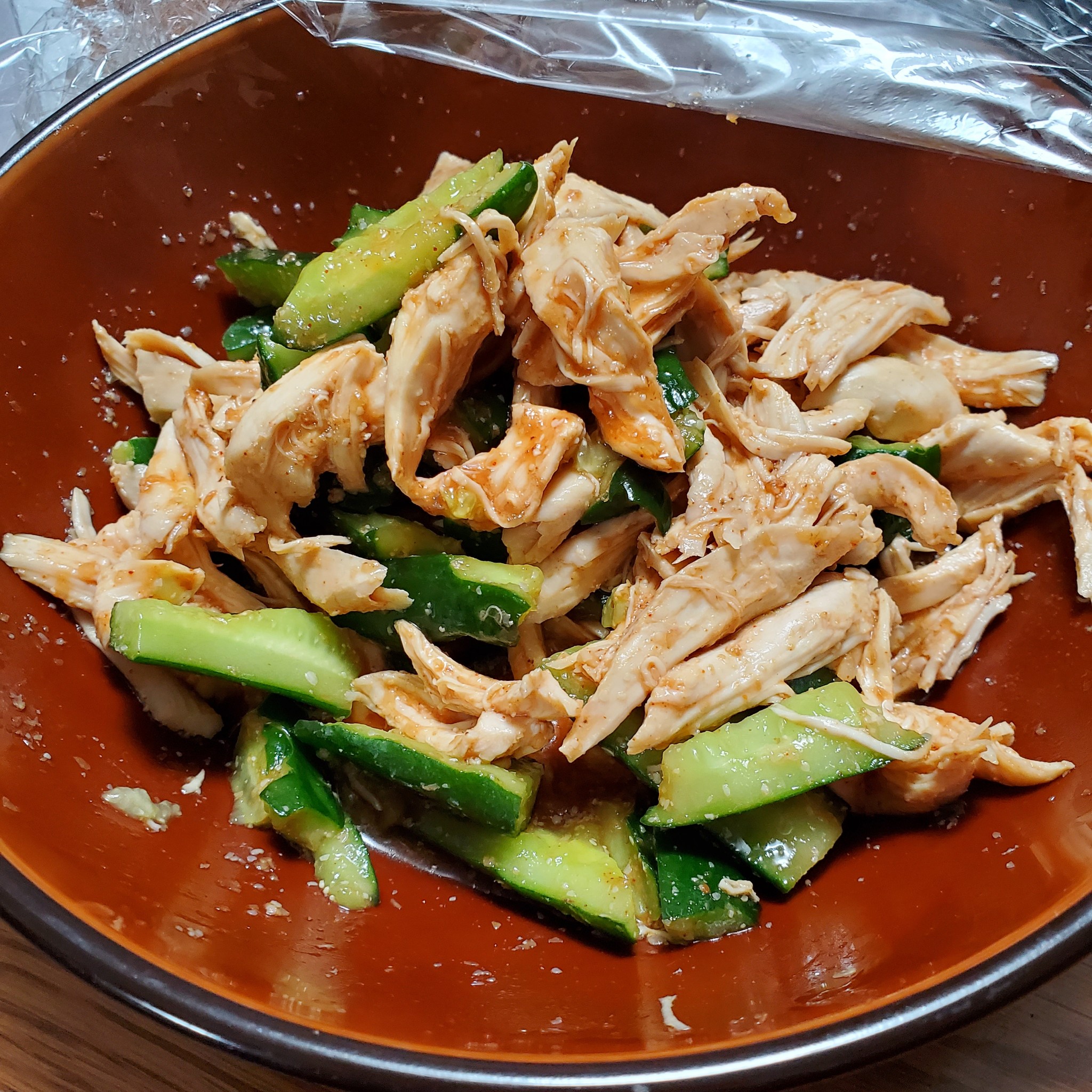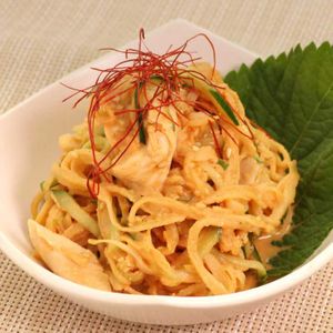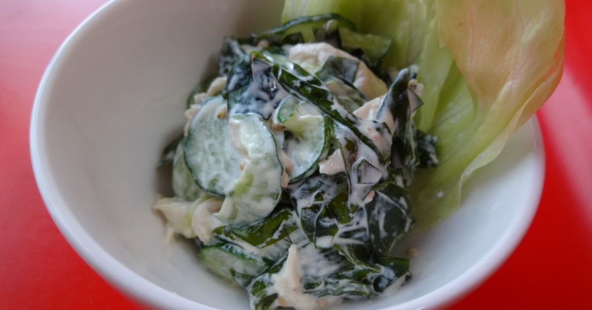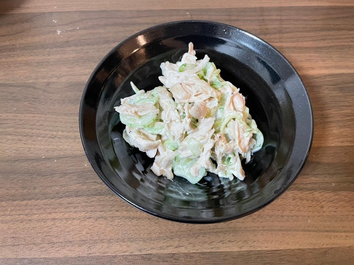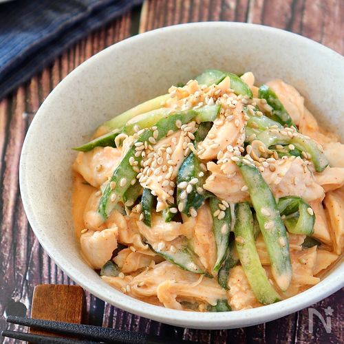 鶏ささみときゅうりのピリ辛胡麻マヨ和え。
