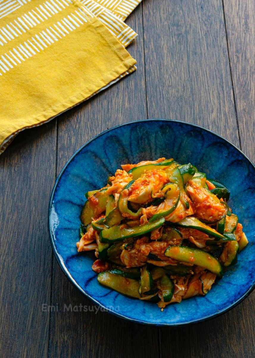 ささみときゅうりの旨辛コチュジャンだれ。