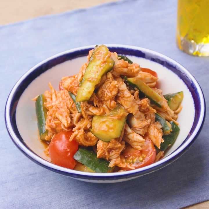鶏ささみときゅうりのコチュジャン和え 秒でなくなるピリ辛系レシピ・作り方Tasty。
