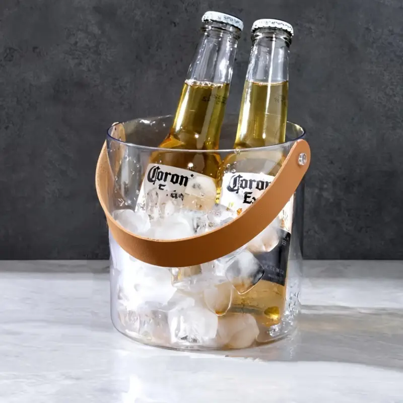 透明プラスチック製アイスバケツ 飲料冷却タブ レザーハンドル付き 多用途 耐久性のあるパーティードリン - Temu Japan。