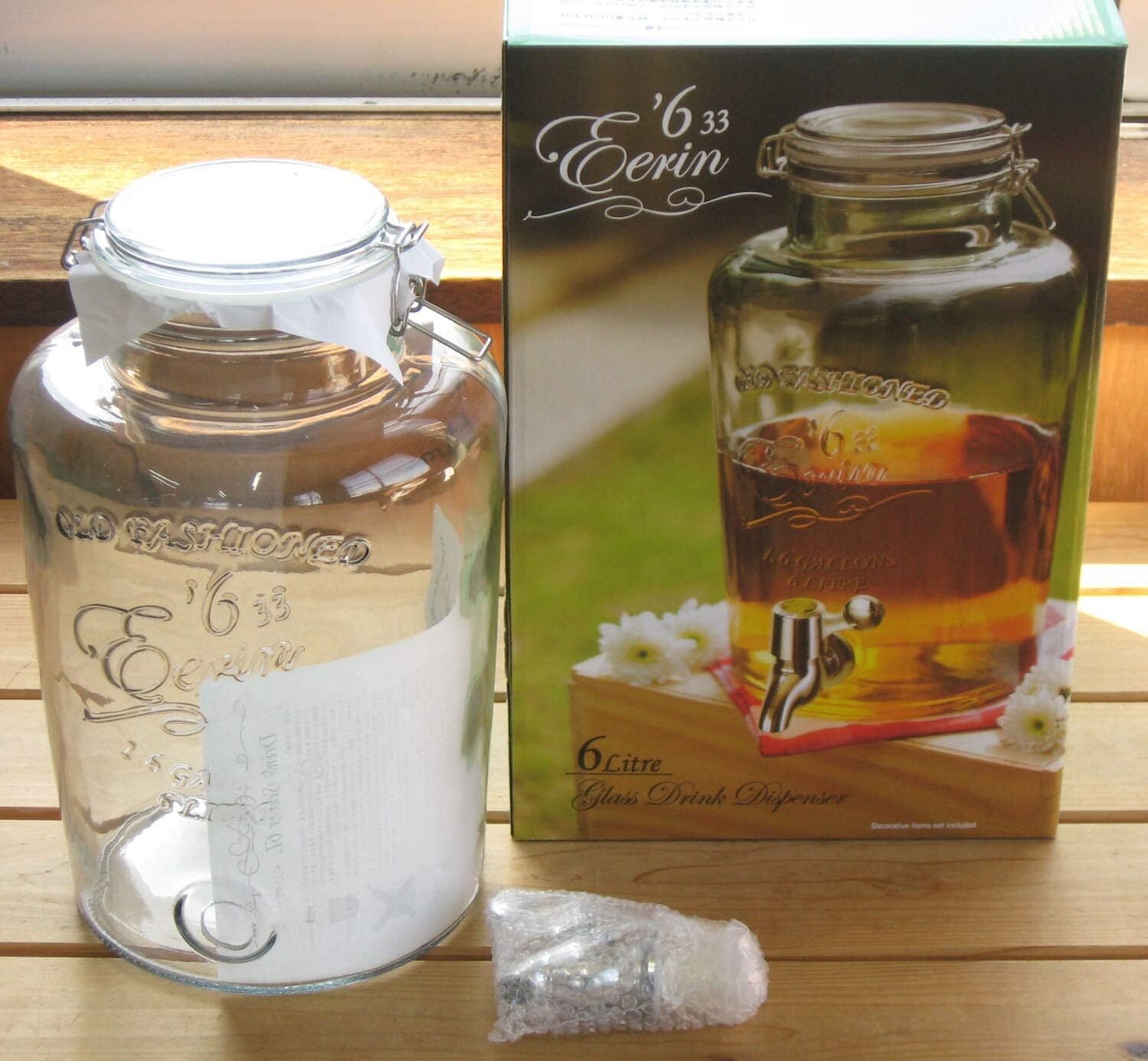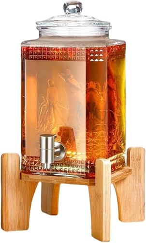 飲料ディスペンサー、ビールディスペンサー、ビール樽ジュースディスペンサー、冷やした透明ガラス缶飲料ディスペンサー、バケットホルダー付 Amazonビール ジュース 保存容器 冷水筒 ドリンクサーバー ガラス貯蔵タンク 大容量 ガラスポット ステンレス製の蛇口 保存。