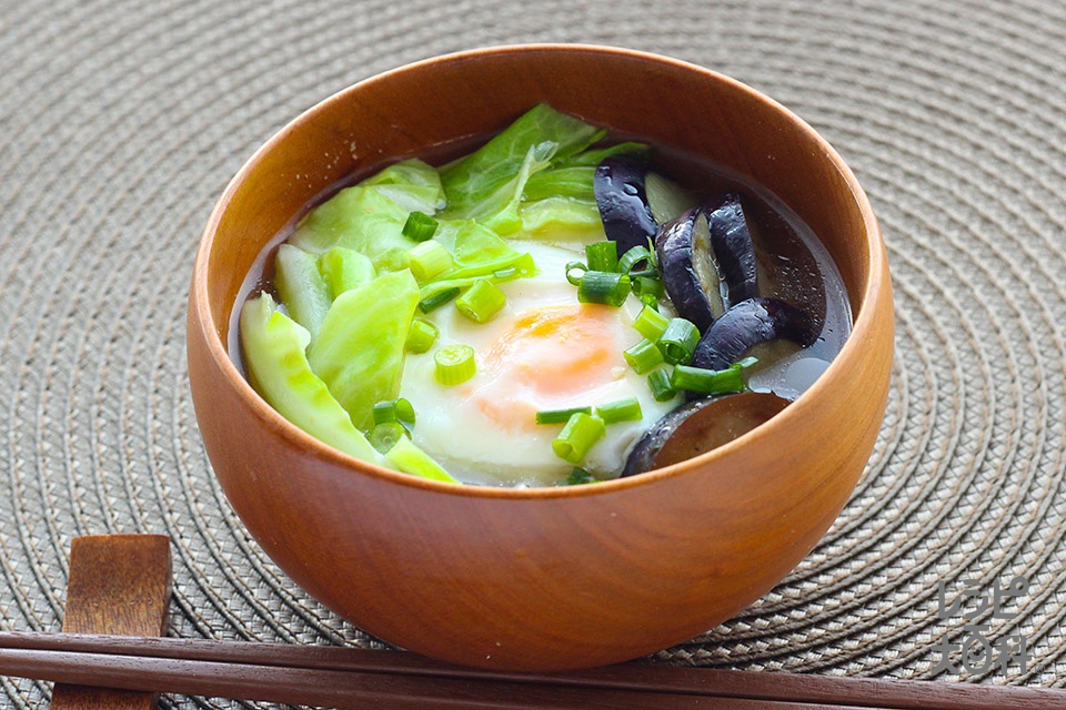 スピードすき焼きの献立 副菜:オクラとみょうがのあえもの、汁物 :キャベツとなすの落とし卵みそ汁 献立・メニュー 味の素パーク たべる楽しさを、もっと。