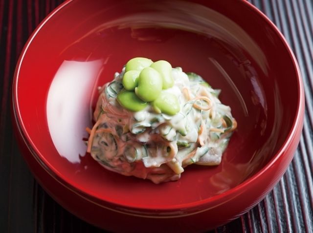 シェフパートナーズ料理塾 「ヒカリヤ」高橋有希料理長「いちじく白和え」。