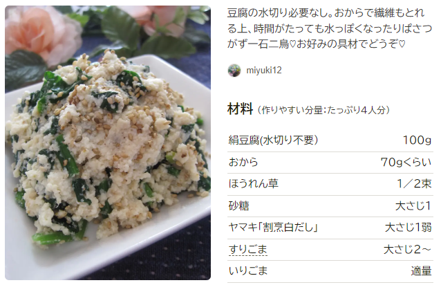 なめらかな口当たり♪ほうれん草の白和えの人気レシピ7選の人気レシピ・作り方デリッシュキッチン。