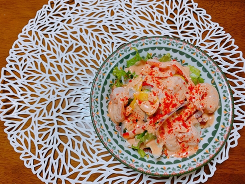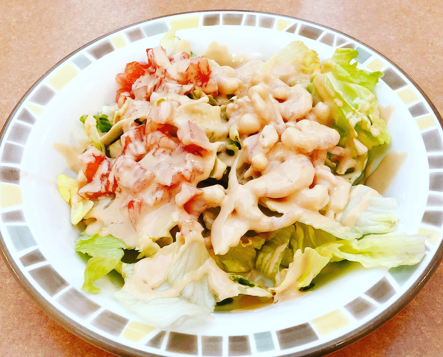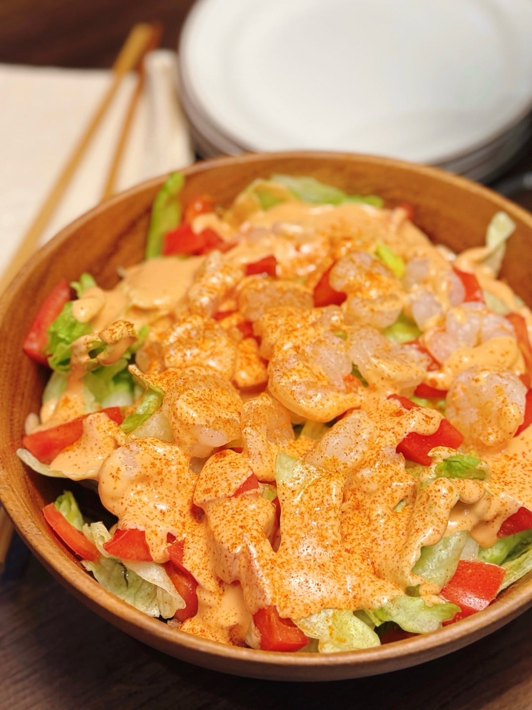 サイゼリヤ風♪コク旨ドレッシングが決め手!エビとレタスたっぷり、うまっ♪ごちそうサラダ!ゆうき酒場。