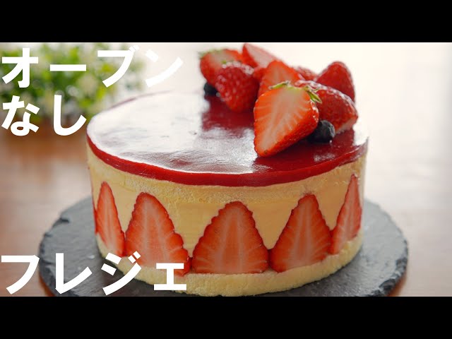 オーブンなし!市販のスポンジケーキで簡単! フレジェの作り方🍓誕生日・記念日・クリスマスケーキ・母の日にもNo-Bake!Fraisier - YouTube。