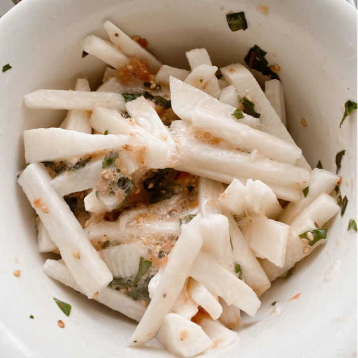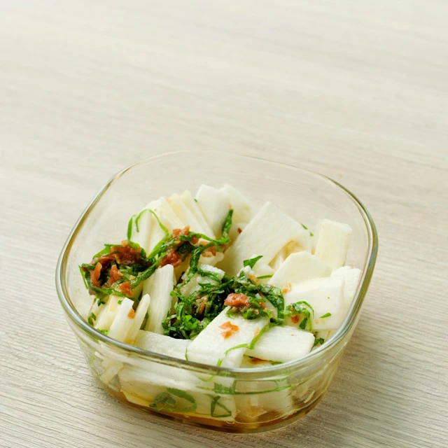 甘酸っぱい梅と爽やかな大葉を加えた「梅と長芋の大根サラダ」 ママと子どもの食育レシピ子供服のブランシェスBRANSHESコーポレートサイト。
