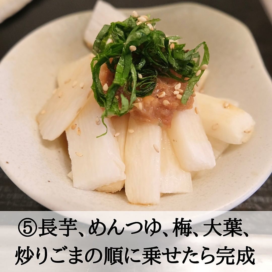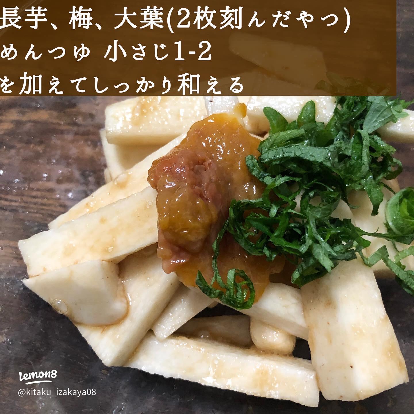 切って和えるだけ、5分でできる!長芋の梅しそ和えくま酒場もぐが投稿したフォトブックLemon8。