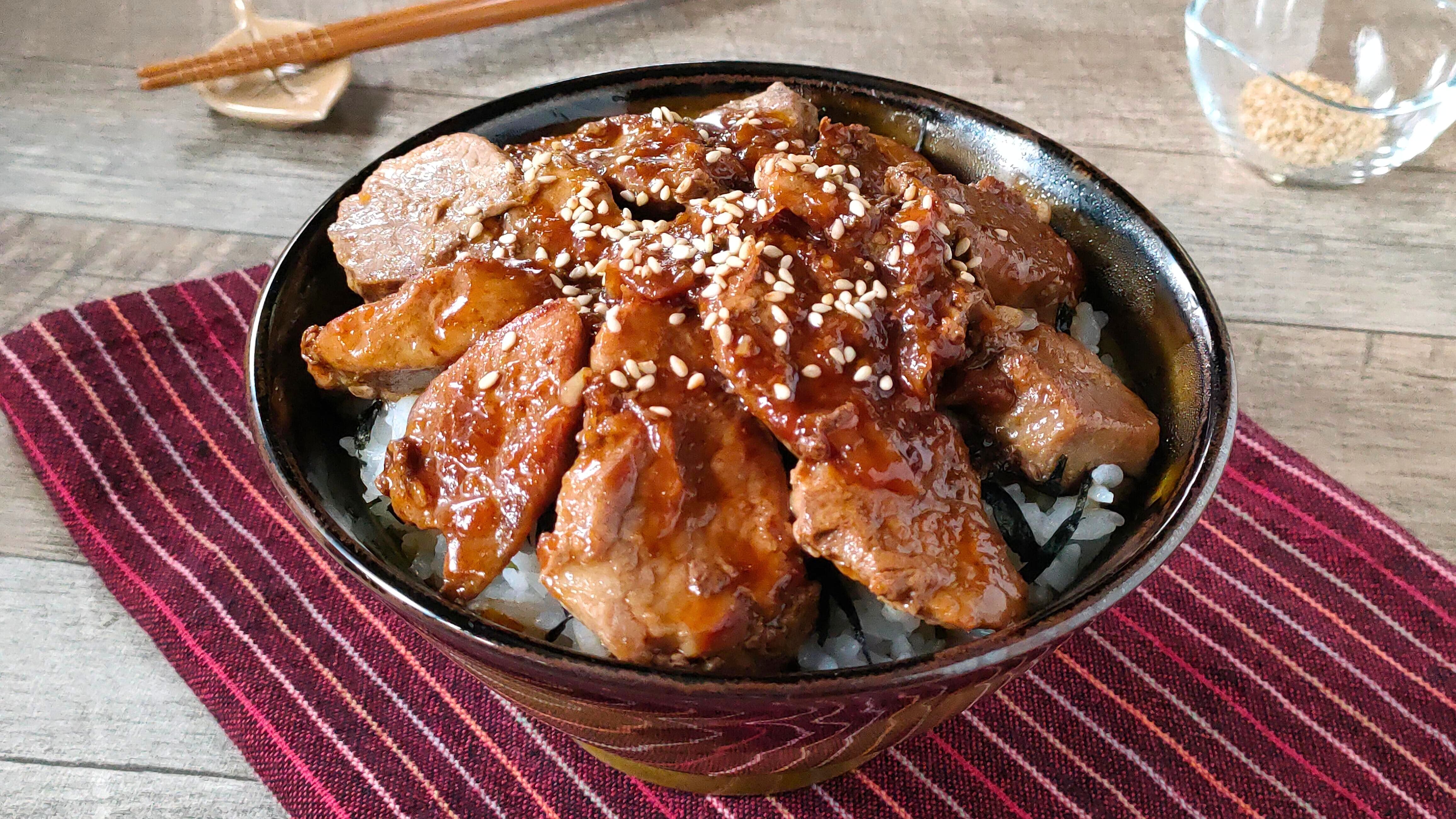 豚ももブロックのガッツリ焼き ガーリックオニオンソース こまちSnapdish スナップディッシュID:K9ff5a。