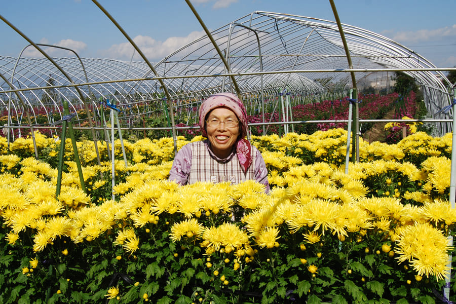 栽培中の食用菊 山形県庄内 写真素材7482666- フォトライブラリー photolibrary。