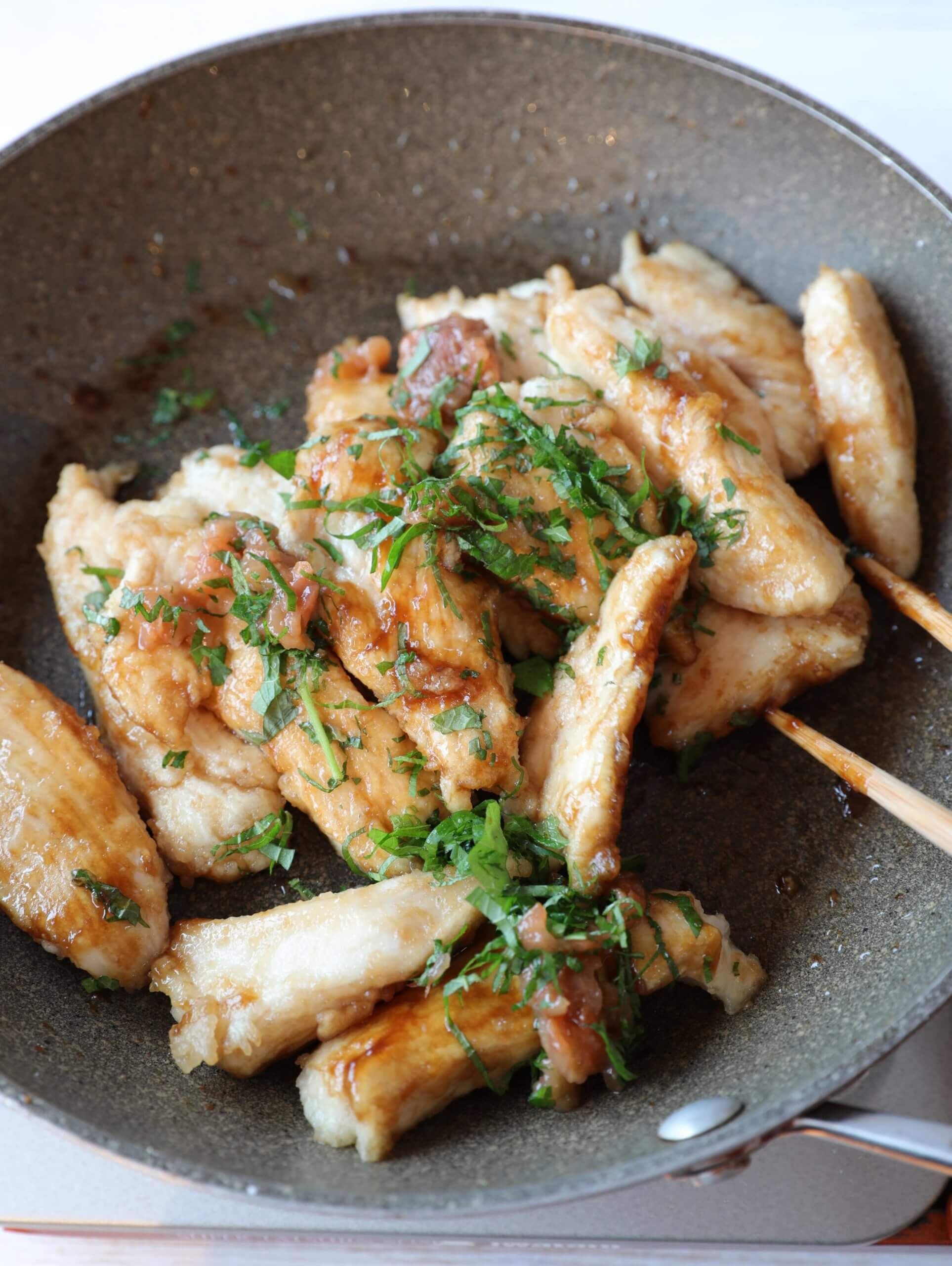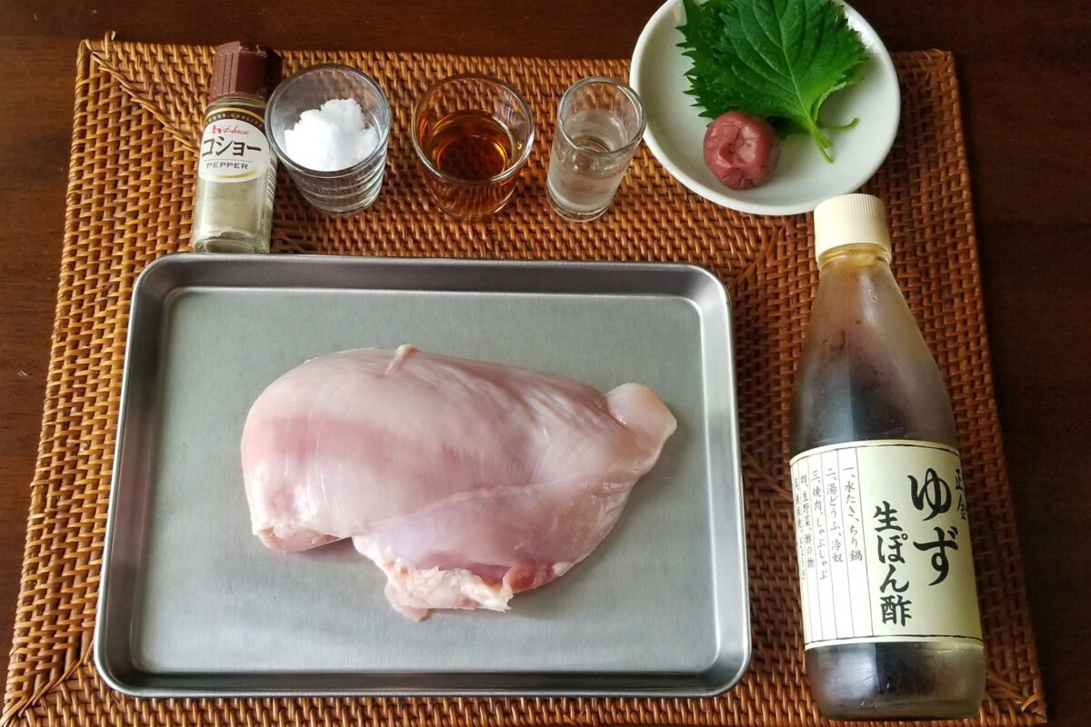 鶏むね肉の梅しそポン酢レシピ。