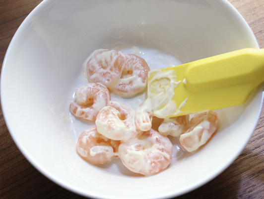 白だし海老とアボガドの粒マスタードマヨ。