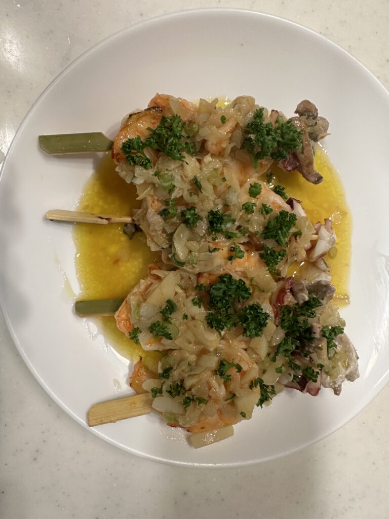 ピンチョス千本ノック!ガーリックシュリンプのピンチョス食育のススメ~管理栄養士の料理で彩るおいしい毎日♪。
