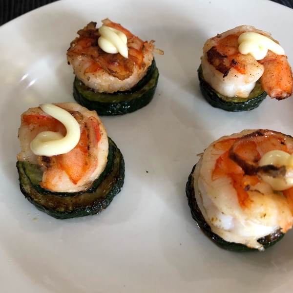 海老とズッキーニのピンチョス。