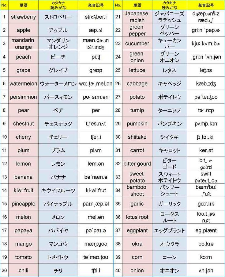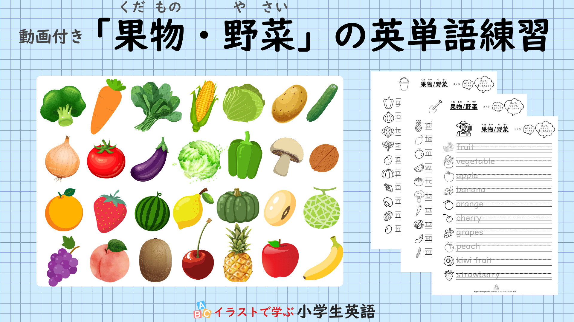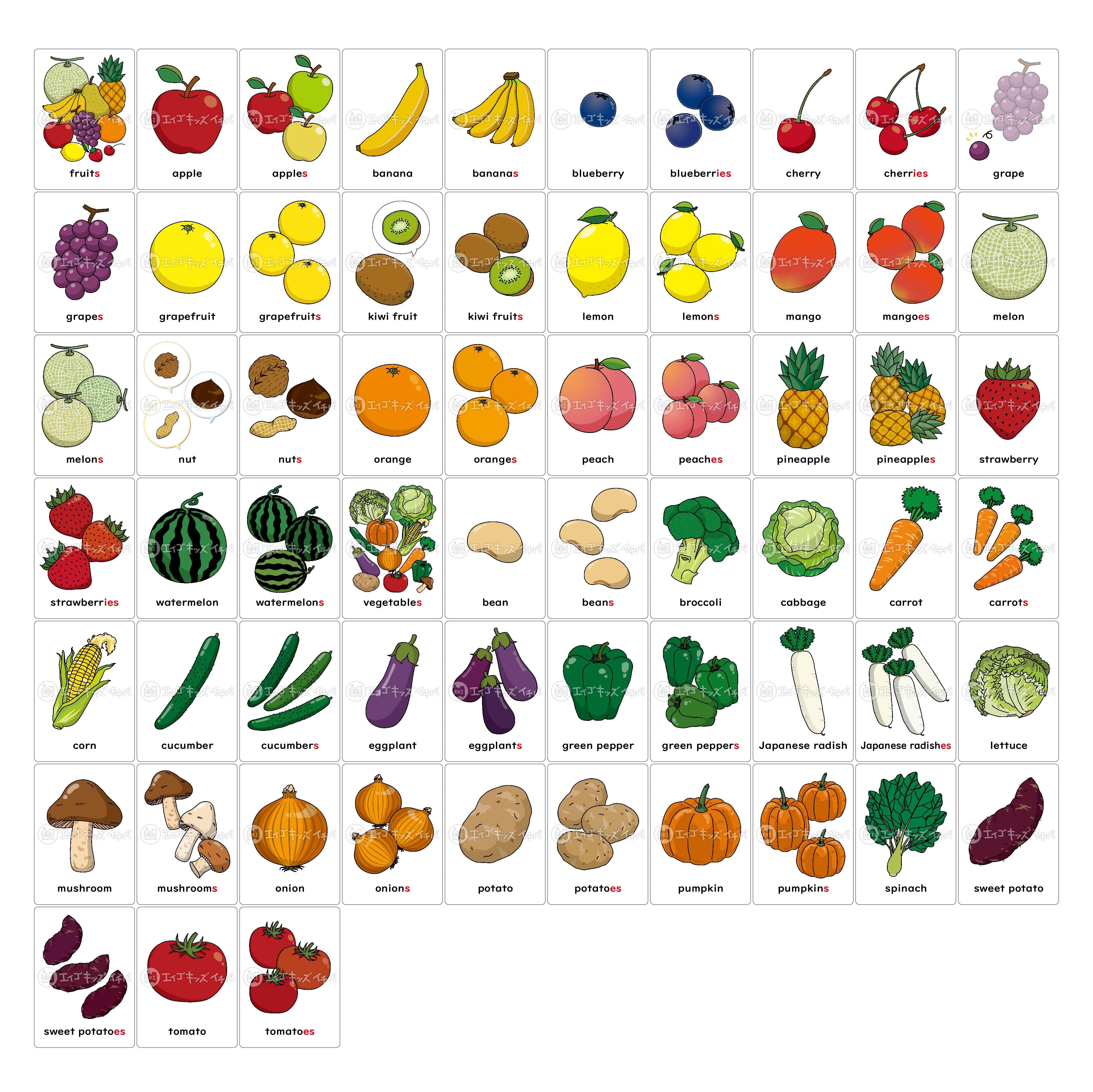 小学生の英単語 「果物・野菜」一覧&無料プリント 動画付きレッツスタート!こどもオンライン英会話。