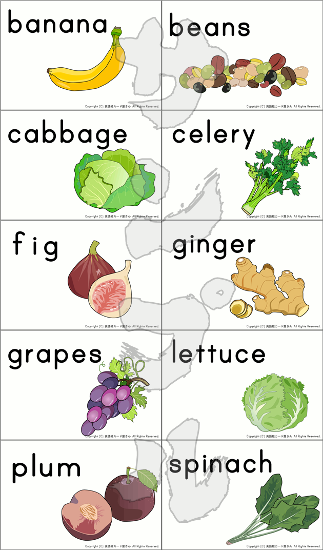 野菜・果物のカード 2 10種無料英語絵カード屋さん 商用利用OK。