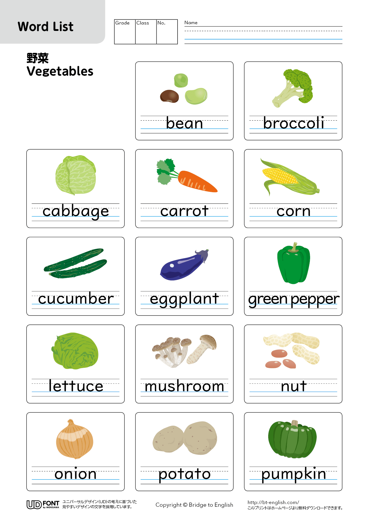 単語リスト 野菜Bridge to English。