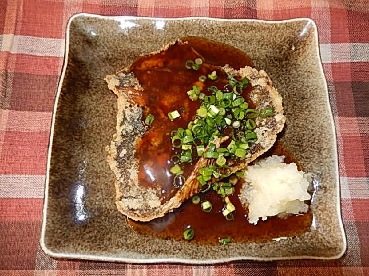 カレイの唐揚げ、出汁おろしかけレシピめんつゆで旨みアップ。