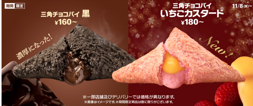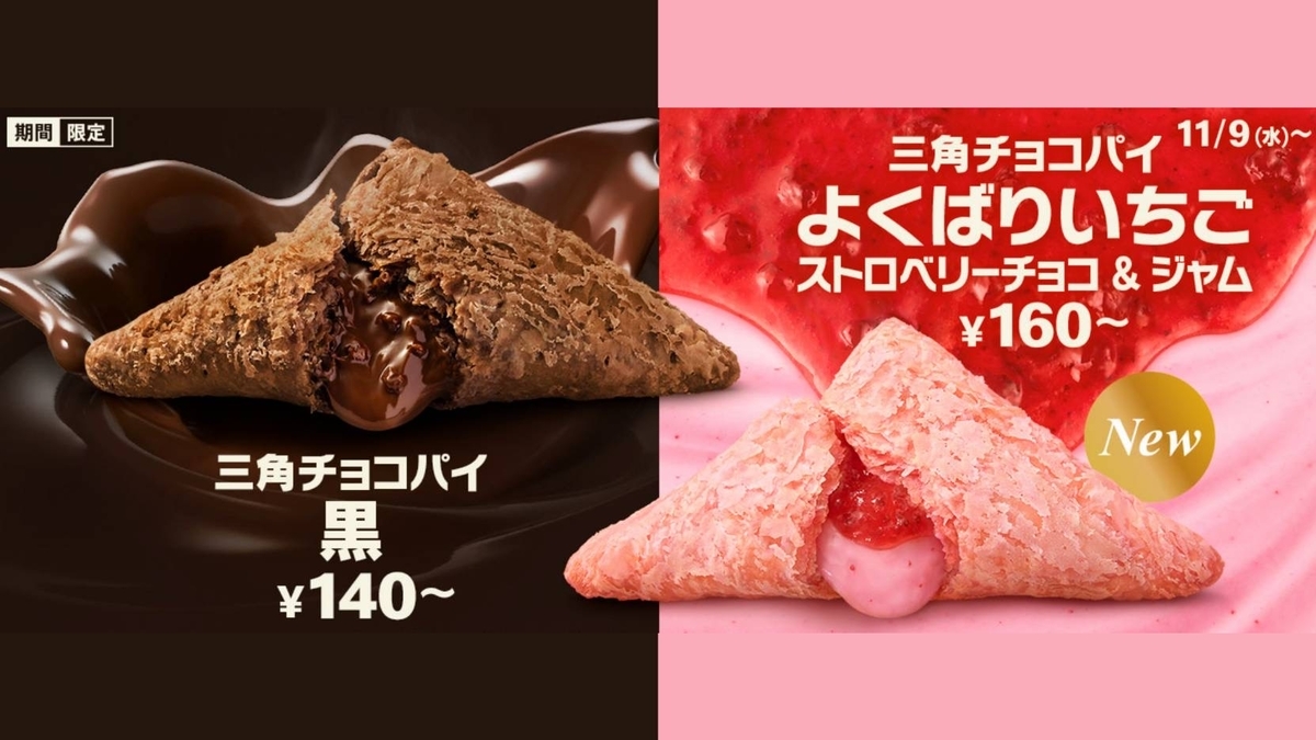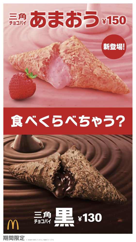 秋冬の定番「三角チョコパイ 黒」が10 8 水 から期間限定で登場!新作「三角チョコパイ いちごミルク味」も!マクドナルド公式。