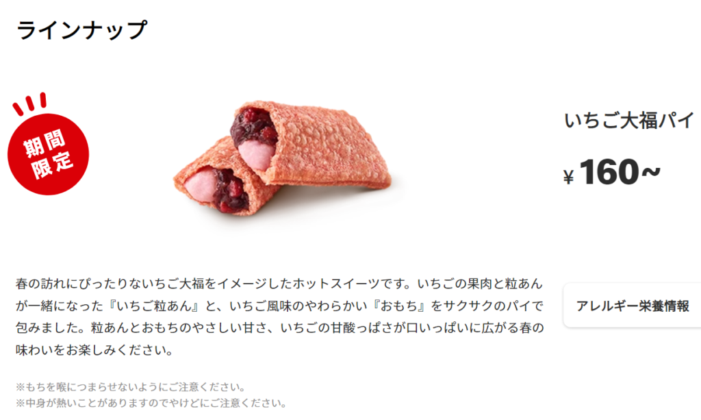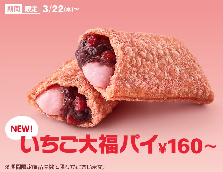 3 22 水 から期間限定で新登場!春の味わい!「いちご大福パイ」お知らせ日本マクドナルドフランチャイジー タビーコーポレーション株式会社。