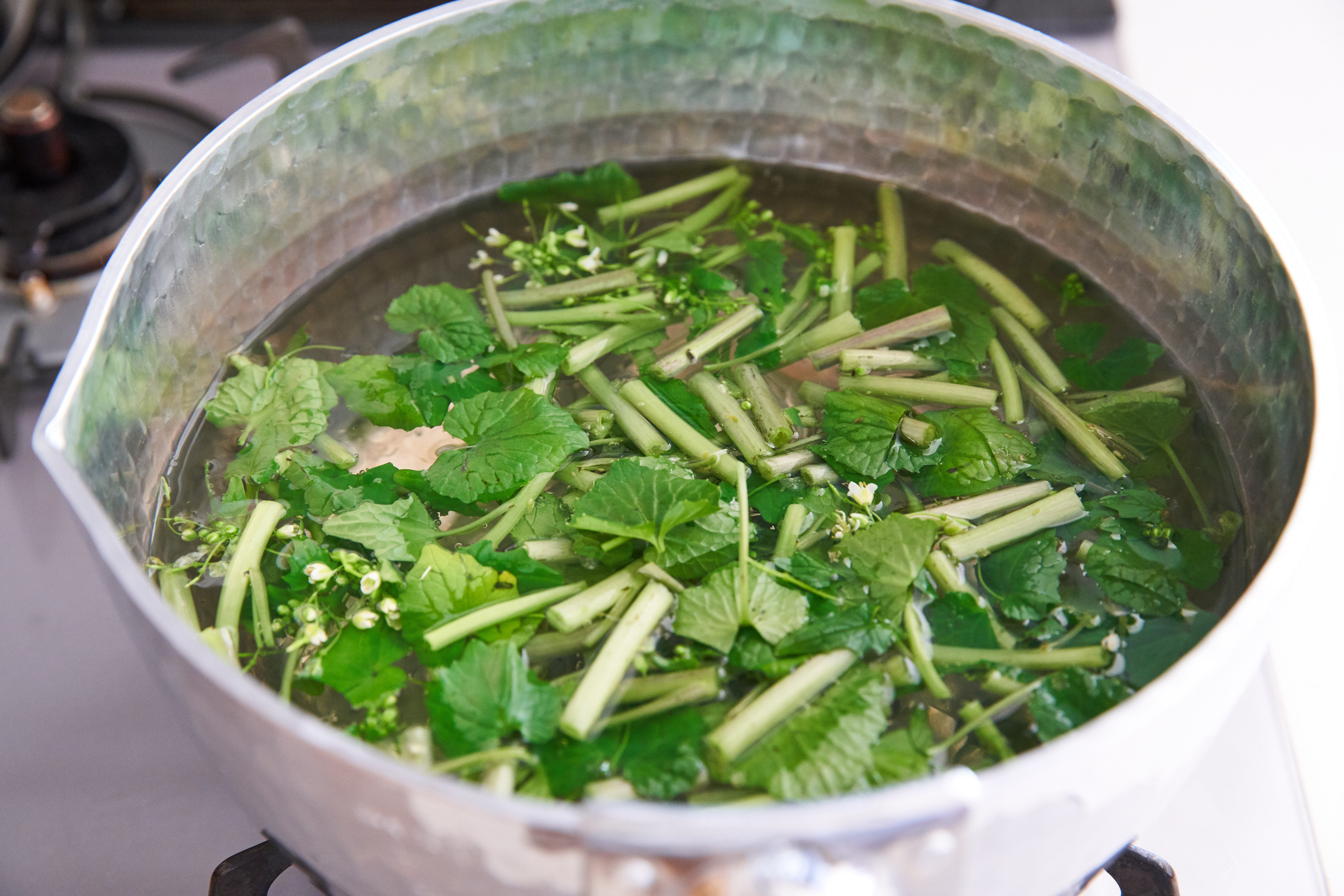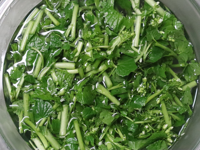 花わさびと葉わさびのゆで方 下処理:白ごはん.com。