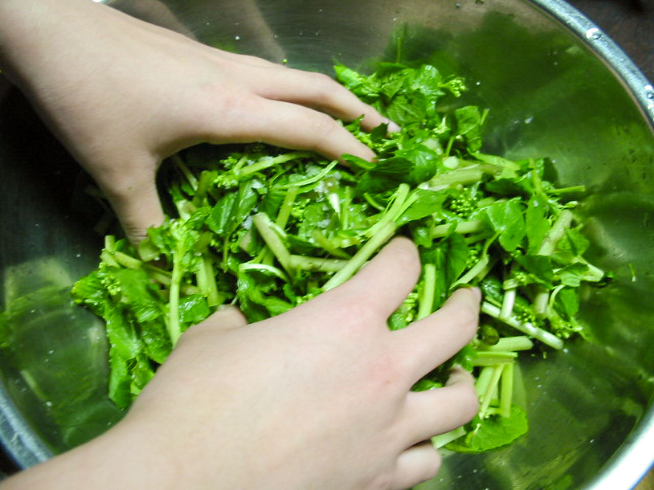 花わさびのしょうゆ漬け 塩もみ。