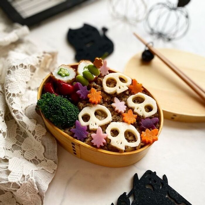 これが限界!れんこんスケルトンでハロウィン夫弁当。