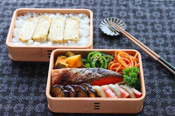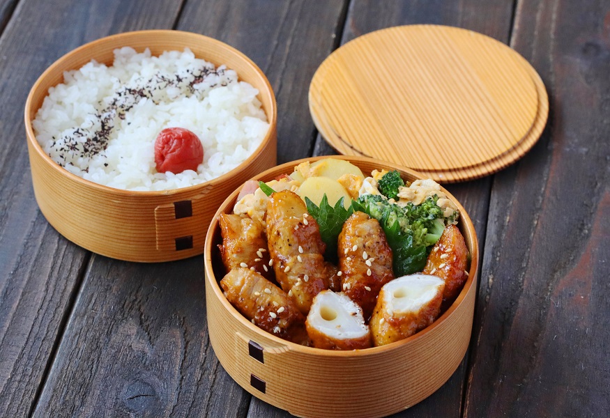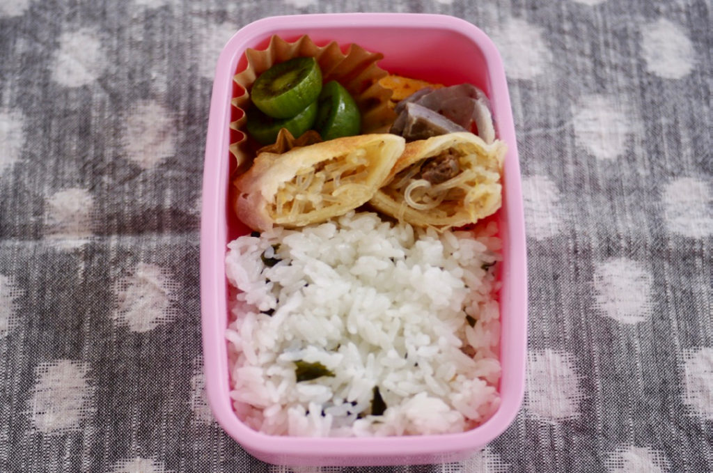 春巻きとれんこん炒めの曲げわっぱ弁当+こども弁当 - wappa。