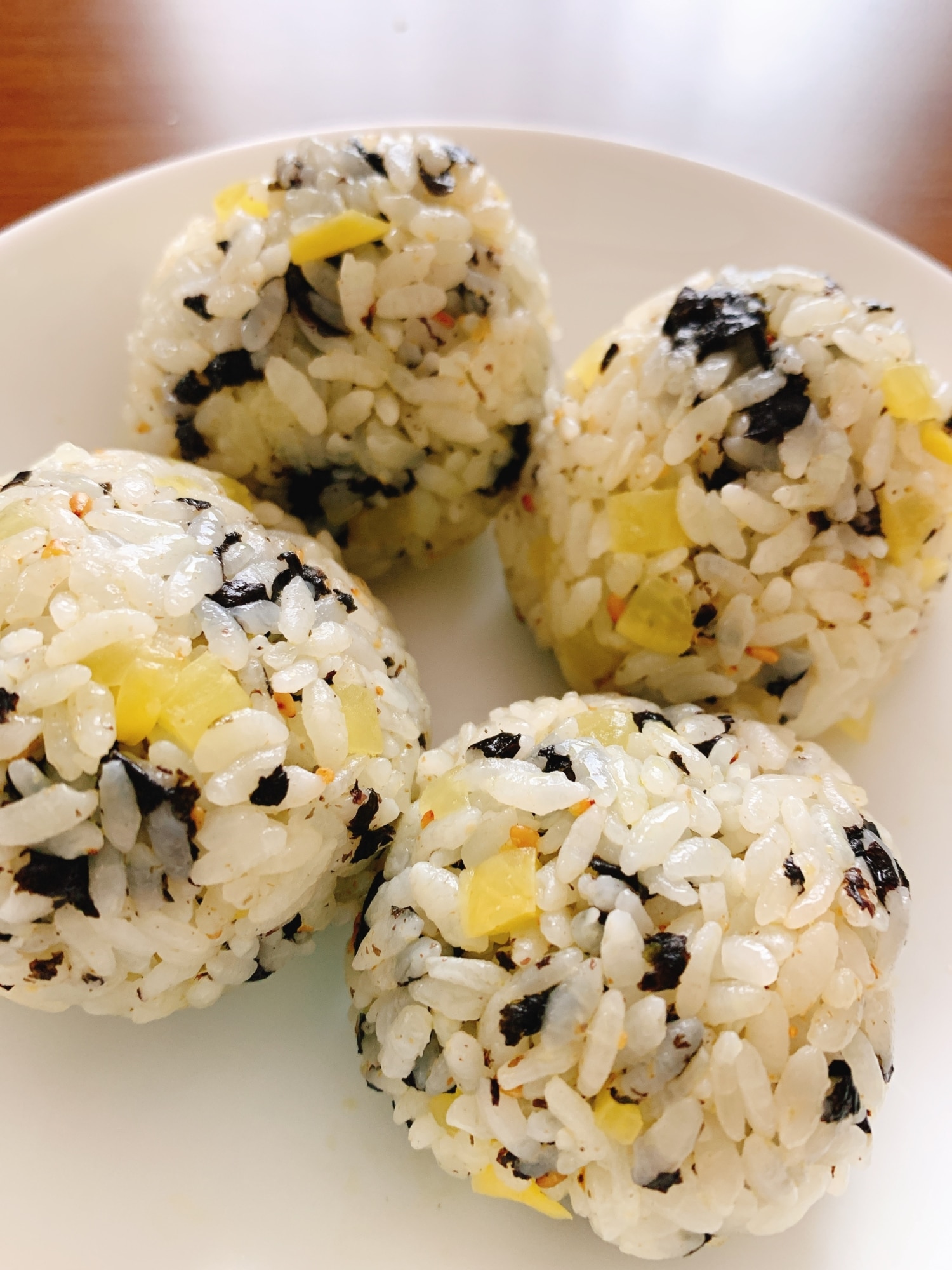 韓国海苔を使ったうまネギ塩混ぜおにぎり。