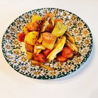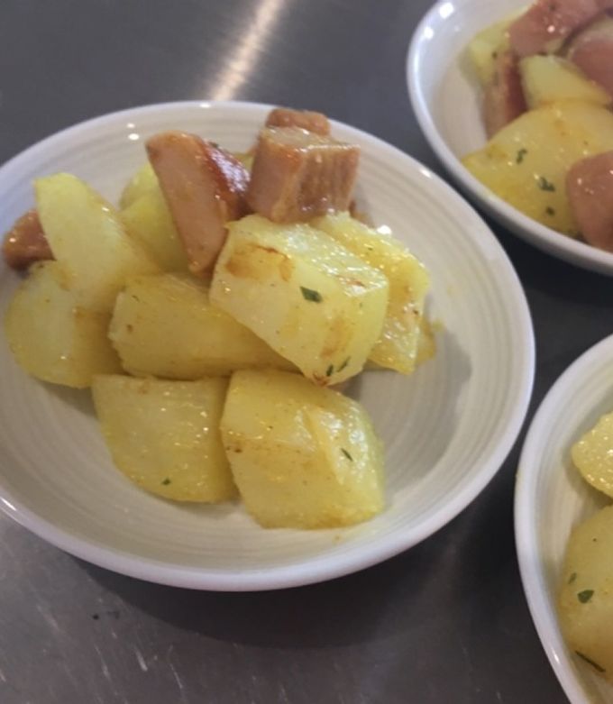 ハマごはん お手軽レシピon X: " 超簡単!カレー風味のジャーマンポテト①じゃがいもの皮を剥き一口大にカットして水大さじ1を加えてラップをかけ600W4分温める②フライパンを熱しオリーブオイルを入れ中火でウインナーを炒める ③じゃがいも、カレー粉。