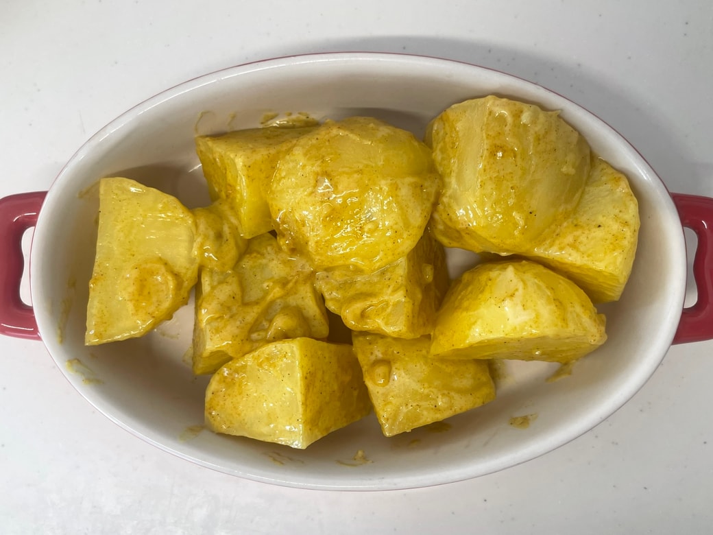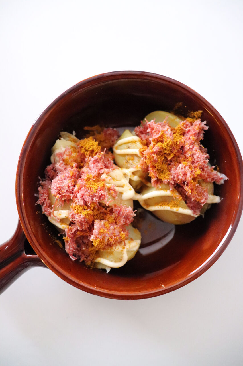 じゃがいもとチーズのカレーマヨネーズ焼き。