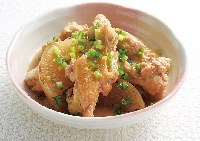 ゼロ活力なべだから引き出せる濃い旨み鶏手羽元と大根のこっくり煮。