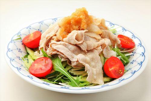 おろしポン酢ドレッシング掛け冷しゃぶサラダ。