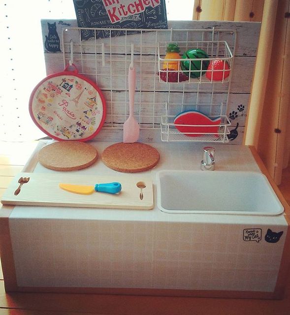 おままごと大好き♡こどものアイディアDIYキッチン!2018年1月13日- エキサイトニュース。
