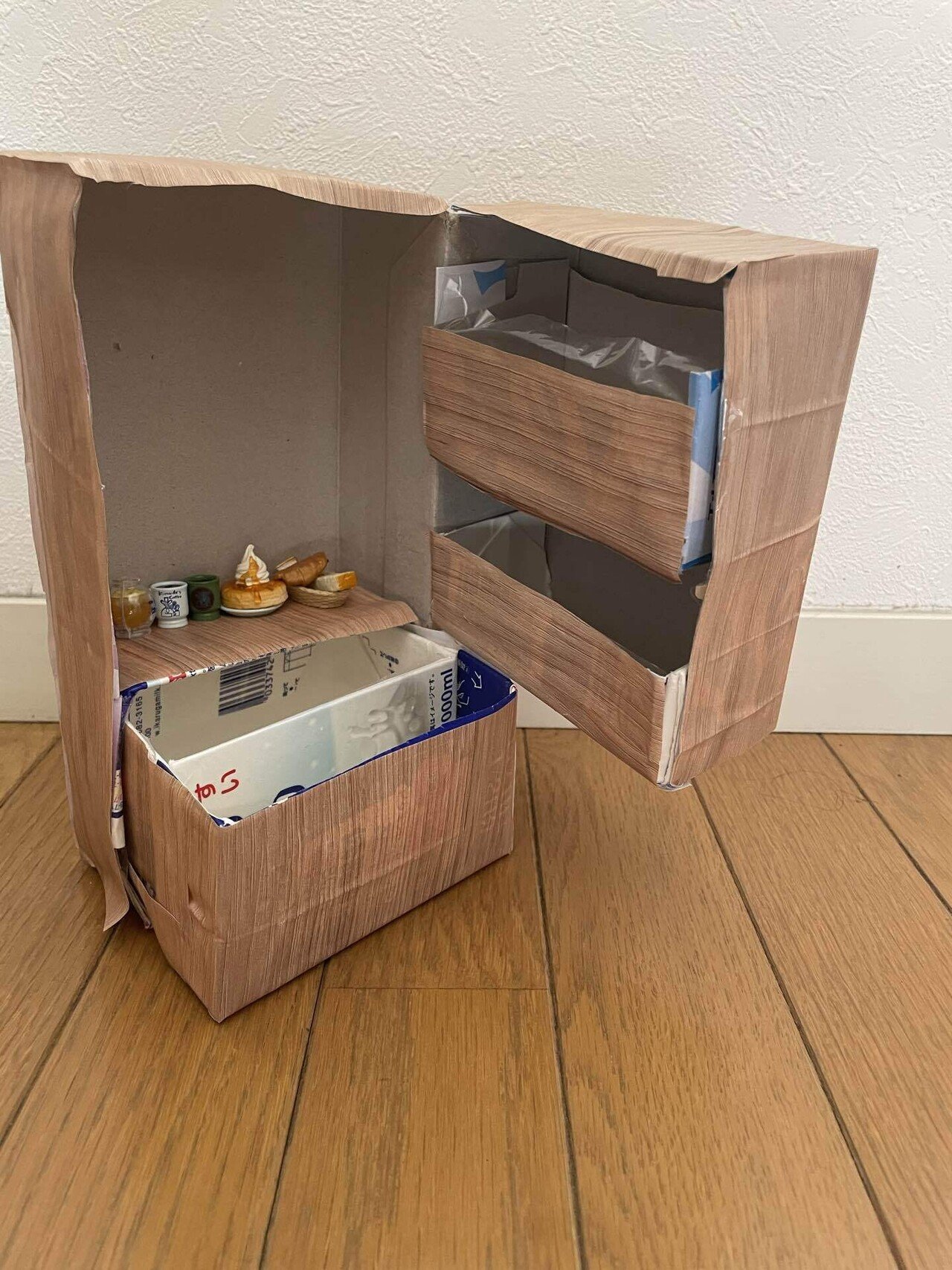 手作りおままごと☆ティッシュの箱と牛乳パックで作る!ミニ冷蔵庫quoco。