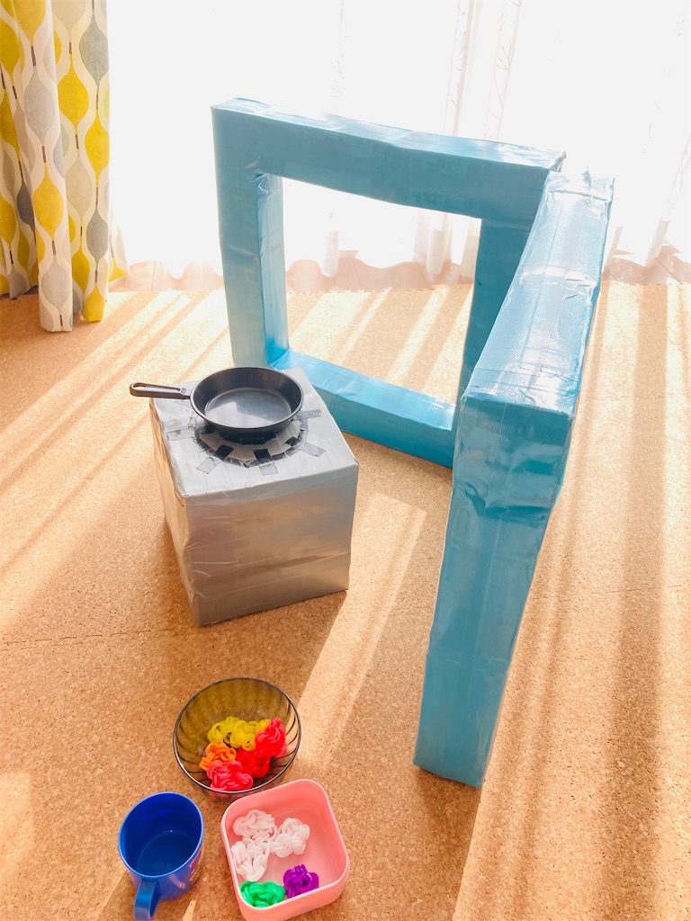 コンパクトキッチン〜ティッシュ箱で手作りおままごとグッズ〜保育と遊びのプラットフォーム ほいくる。