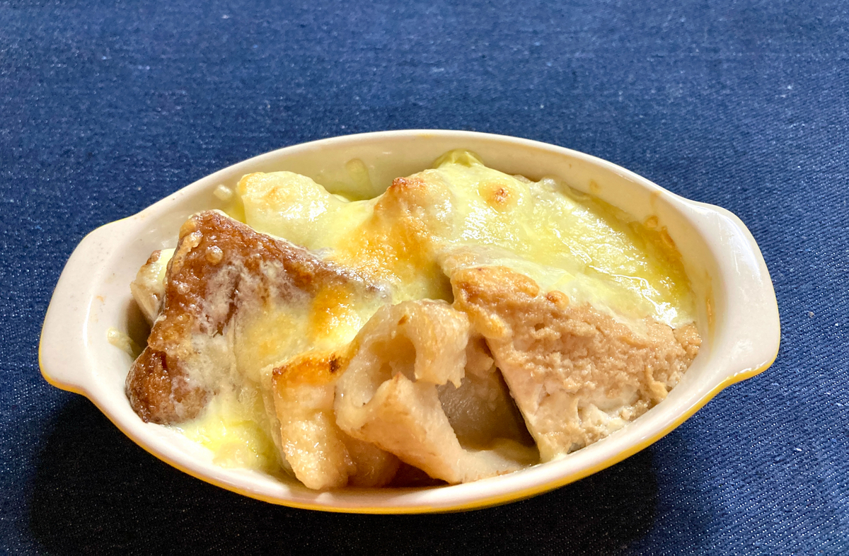 余ったおでんで簡単リメイク。濃厚味噌チーズグラタン。