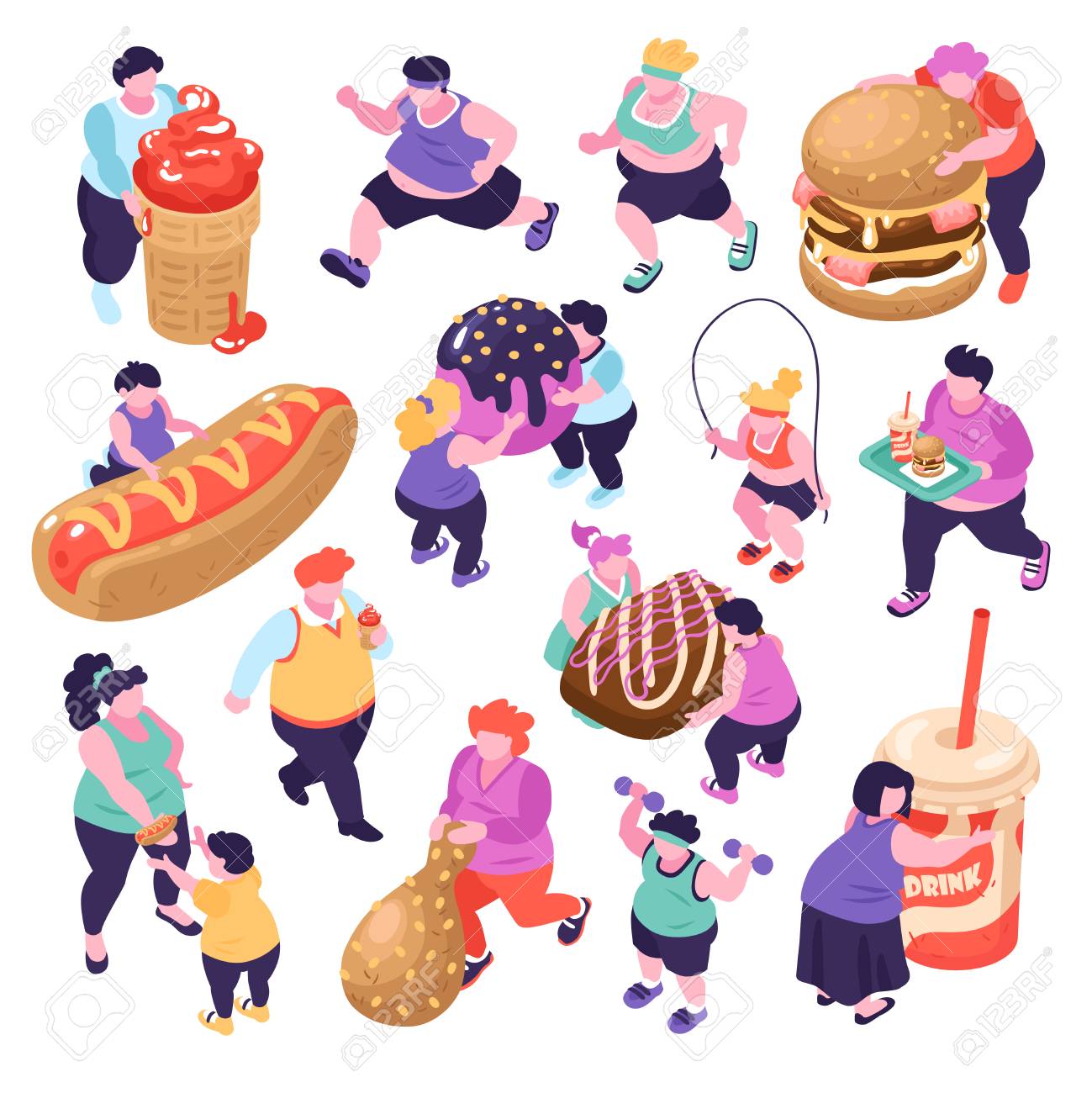 大食いに苦しむ男女と白い背景3Dベクトルのイラストに隔離されたスポーツ等角線アイコンを行うのイラスト素材・ベクター Image 124733516。