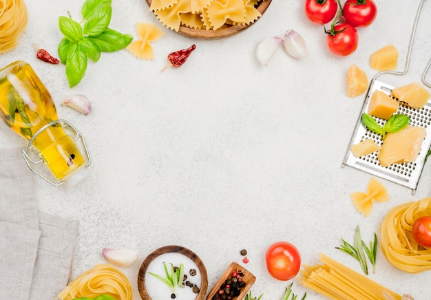 食べ物 背景 イタリア料理 料理 古い板の上 フリーコピースペース トップビューPremium写真。