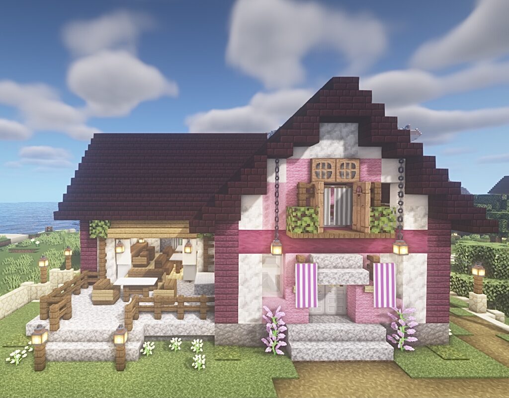 วิธีสร้างบ้านและคาเฟ่สีชมพูใน Minecraft 🎀。