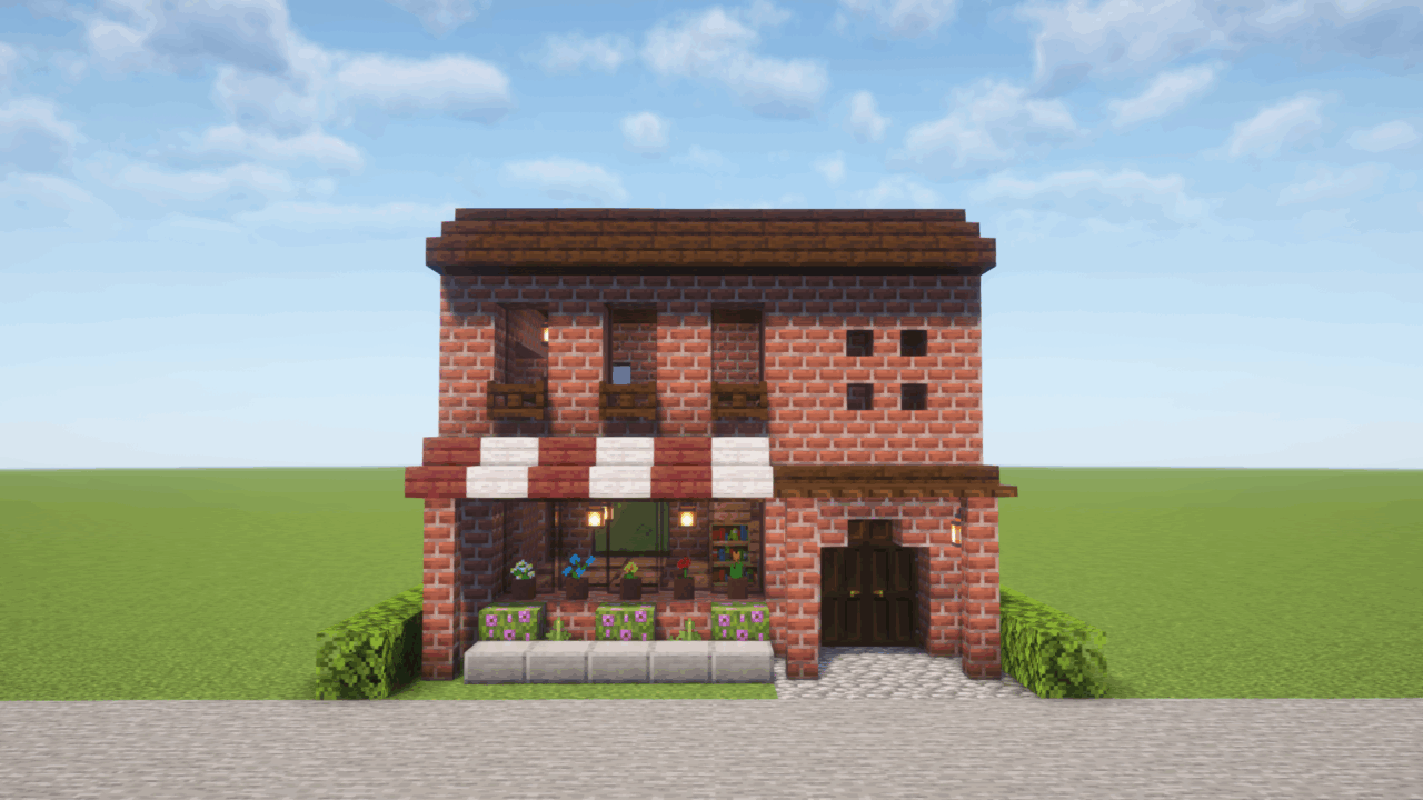 マイクラ建築:レンガ造りのレトロな喫茶店。簡単10×10。No.133SOUのマイクラログ。