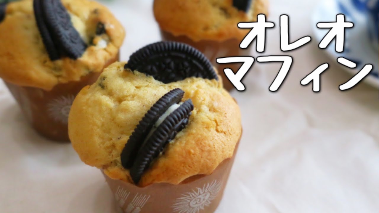 お菓子 バターなし!ホットケーキミックスで作るオレオマフィン Oreo muffin - YouTube。