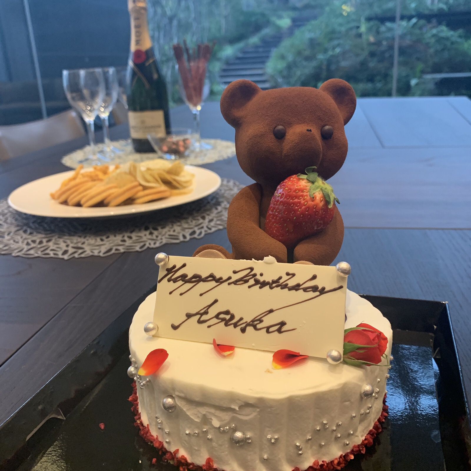🎠𝕃𝕠𝕦𝕒𝕟𝕘𝕖 𝕥𝕠𝕜𝕪𝕠🎠 ルワンジュ東京 @louange_tokyo ずっと気になっていた くまさんの バースデーケーキ🧸🎀 めっちゃ可愛かった🎂💕˶˙ᵕ˙˶くまの中は空洞でホワイトチョコでできてたよ🎂😋💕可愛すぎて食べるのが勿体なかった🥺✨ルワンジュ。