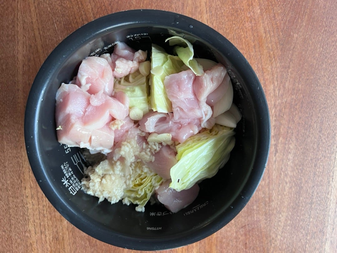 炊飯器で作る、鶏肉と野菜の塩麹蒸し焼きレシピ。